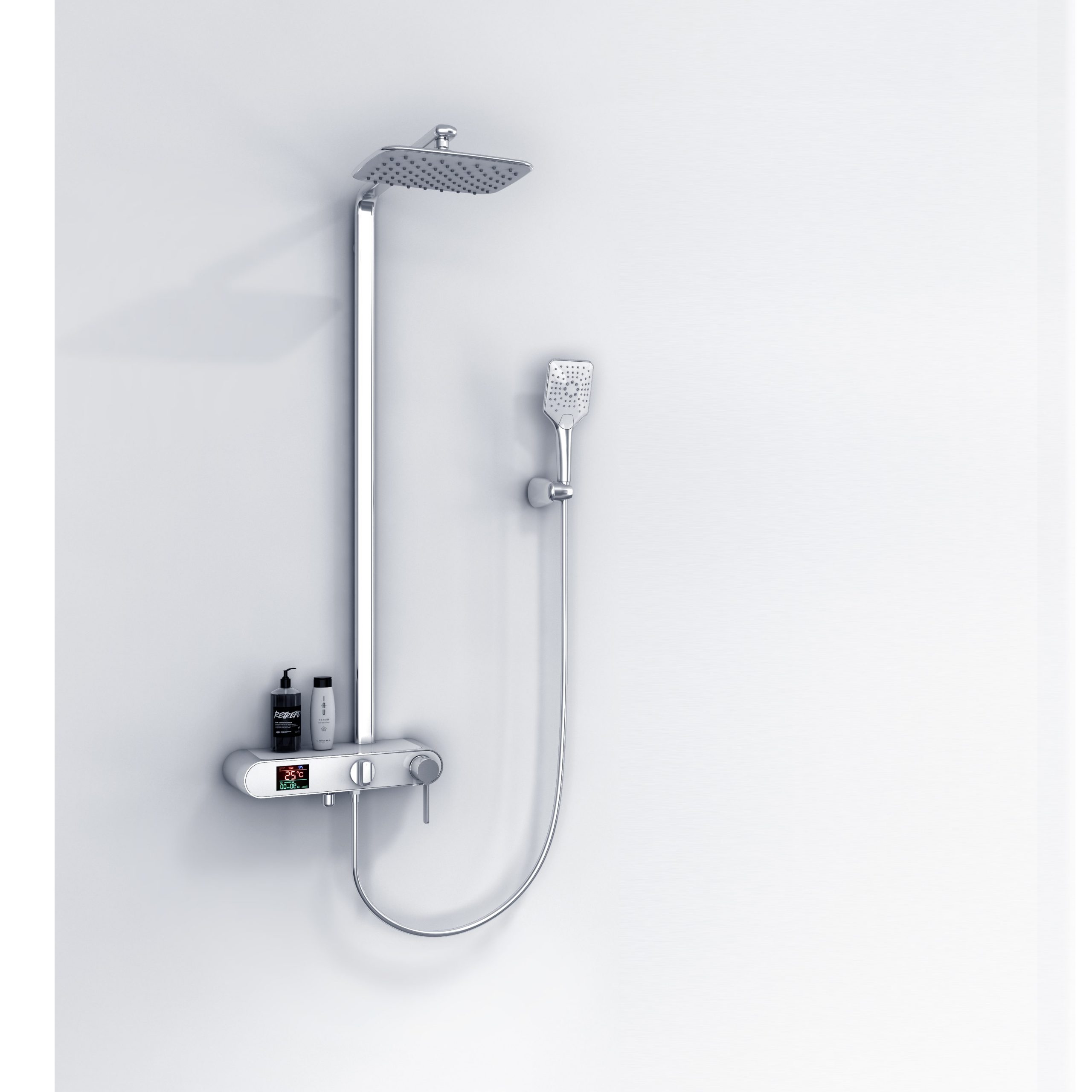 Consist of: Overhead shower, hand shower, shower hose, shower holder