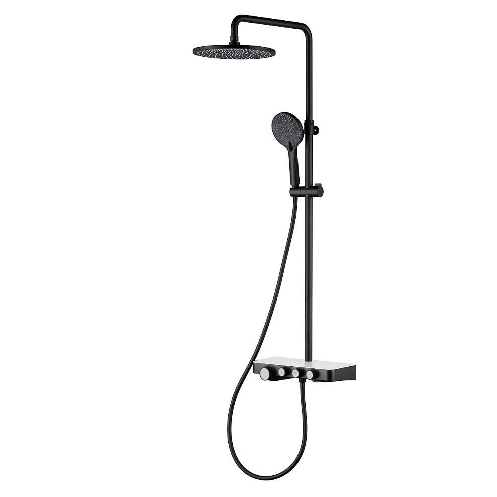 Consist of: Overhead shower, hand shower, shower thermostat, shower hose, shower holder